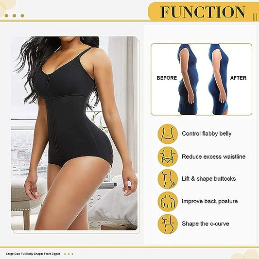 FeelinGirl Women Shapewear Bodysuit Tummy Control Fajas Body Shaper for Women with Zipper