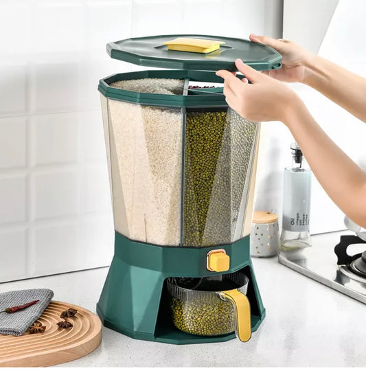 Transparent rotatable rice bucket large capacity grain storage dispenser